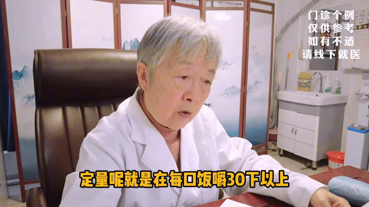后边一句话即是定量,定量即是在每口饭嚼30下以上还认为不好意思瞻念,少吃两口,多嚼几下,因为胃全有毛病,干不了那么多活了,牙再偷懒,不是给它增多包袱就好的慢,这很容易相识这个东西。