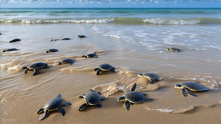 思象一下,一只刚破壳而出的绿海龟宝宝,惟有巴掌大小,却要濒临强大无际的海洋。它从佛罗里达的海滩开赴,一头扎进漆黑的大欧好意思深处。莫得GPS,莫得舆图,甚而莫得爸爸姆妈带路。